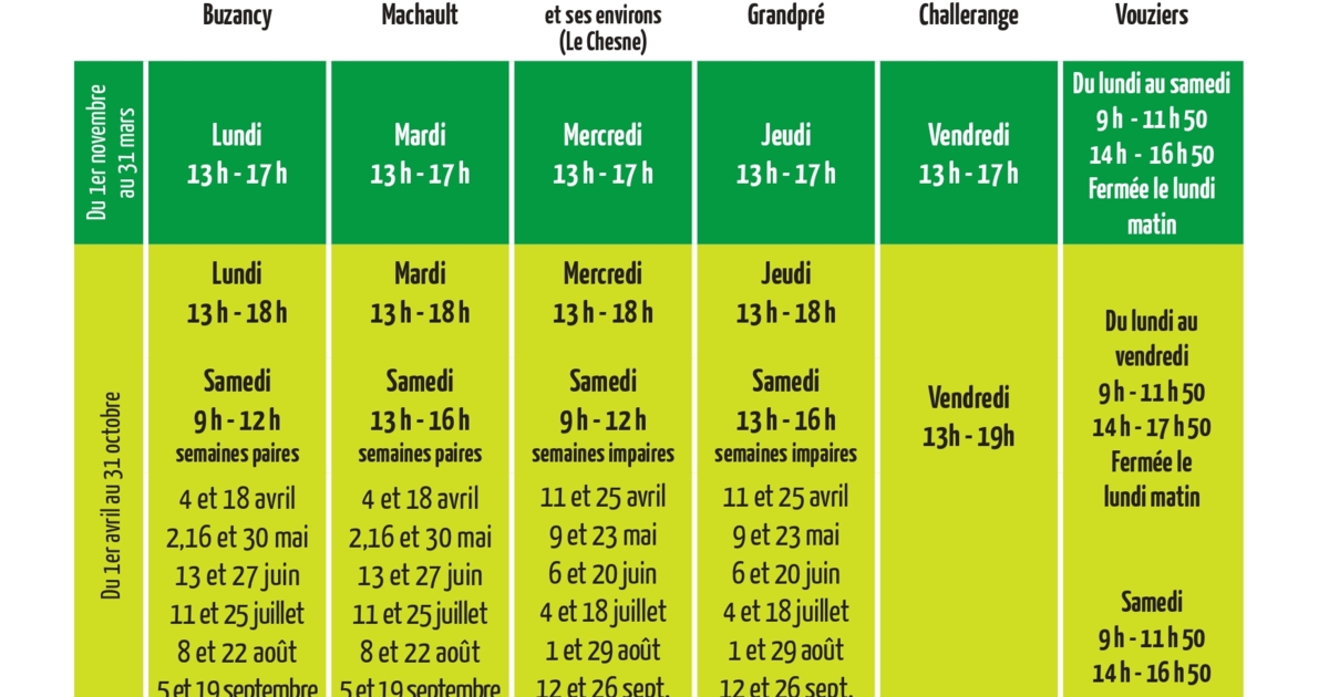 2026 complet, incluant les horaires et les dates d’ouverture des samedis,