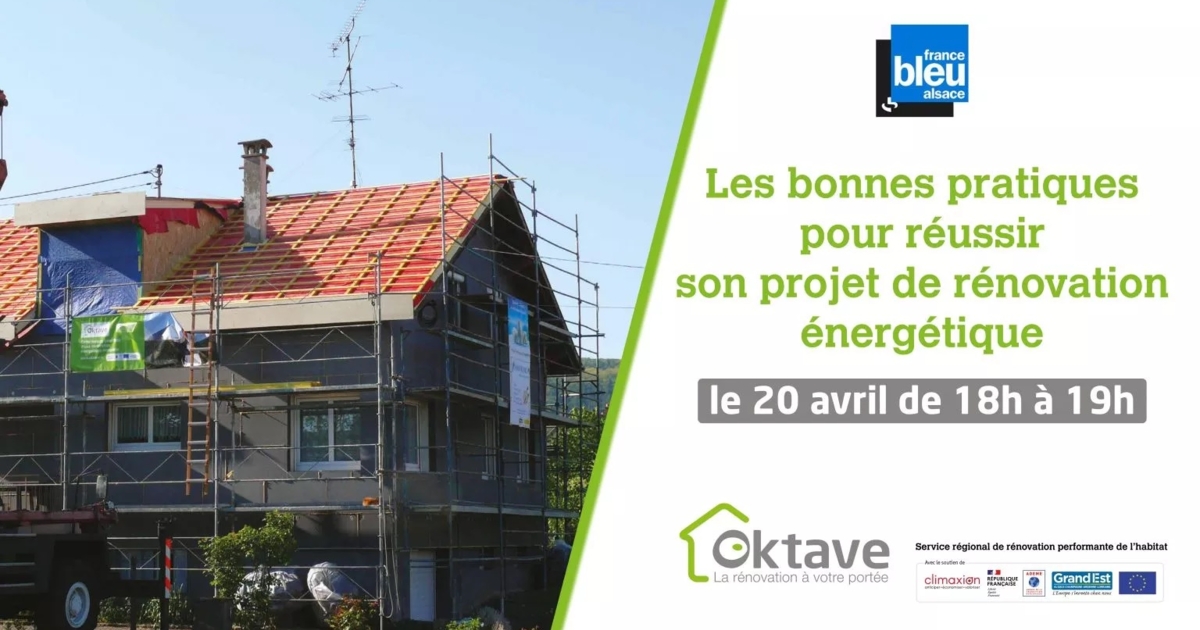 Oktave vous invite à rejoindre son Live retransmis en direct sur le site Oktave le mardi 20 avril de 18H à 19H pour découvrir les bonnes pratiques pour réussir votre projet de rénovation énergétique !