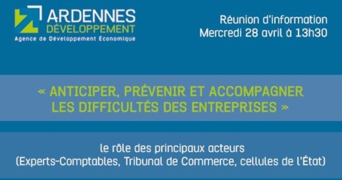 Le 28 avril prochain, l’agence Ardennes Développement propose un webinaire avec l’Ordre des Experts-Comptables, le Tribunal de Commerce de Sedan, les cellules d’appui de l’Etat (liées à URSSAF, DIRECCTE, etc) pour présenter les dispositifs visant à aider les entreprises en difficulté.