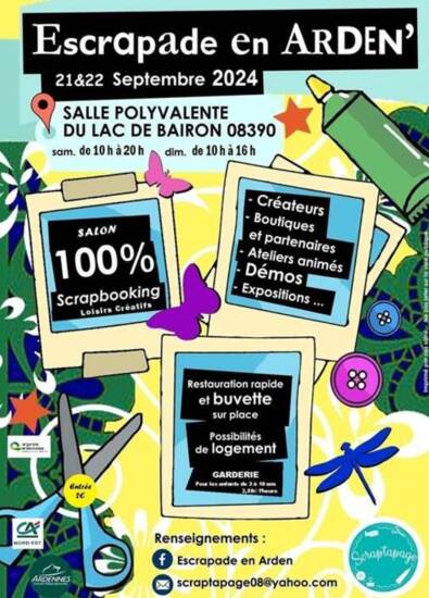 Rendez-vous au salon 100% scrapbooking, le samedi de 10h à 20h et le dimanche de 10h à 16h.Au programme : créateurs, boutiques et partenaires, ateliers animés, démos, expositions...Restauration rapide et buvette sur place. Possibilités de logement.org. Scraptapage