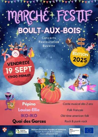 Marché festif de producteurs locaux (artisans, produits fermiers...) Restauration assurée par les producteurs locaux. Animations et concerts : - Spectacle pour enfants : Pépino - Louise-Ellie (Folk) - IKO IKO (Western Groovy) - Quai des Garces (Punk Rock) Organisé par la la Maison d'Activités Rurales et Solidaires